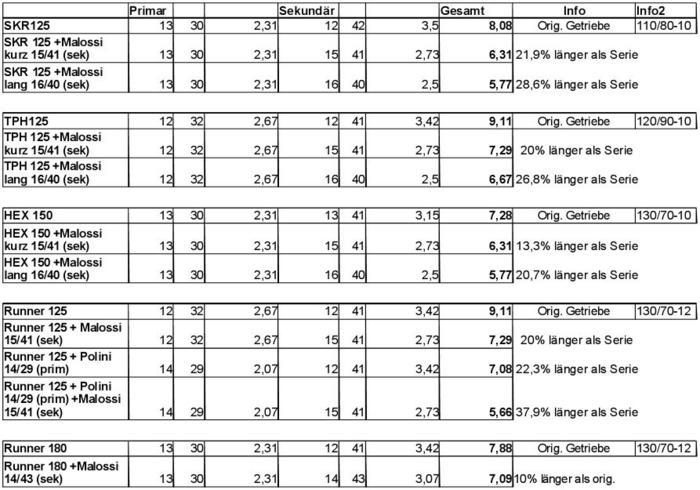 Za auspuhe znam da postoje SM 06 i SM 02 koji su bez katalizatora. Isto tako, getribe na 125 AC i LC su iste.